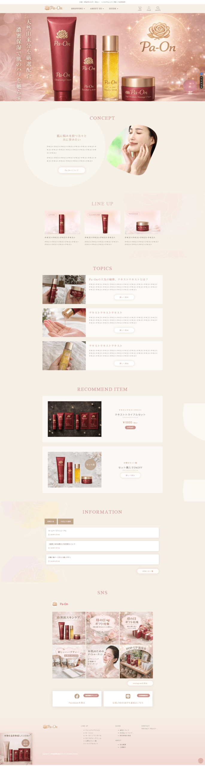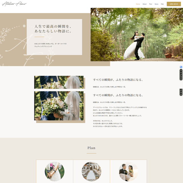 「どんなサイトになるか不安…」という心配はもういりません。 パーオンでは、厳選された完成済みデザインテンプレートをご用意。 これらをベースに、お客様の「写真」と「言葉」を入れ替えるだけで、11万円とは思えないクオリティのサイトが完成します。